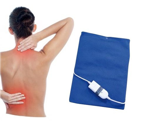 Almohadilla eléctrica de calor, rectangular, con conexión a la corriente eléctrica.