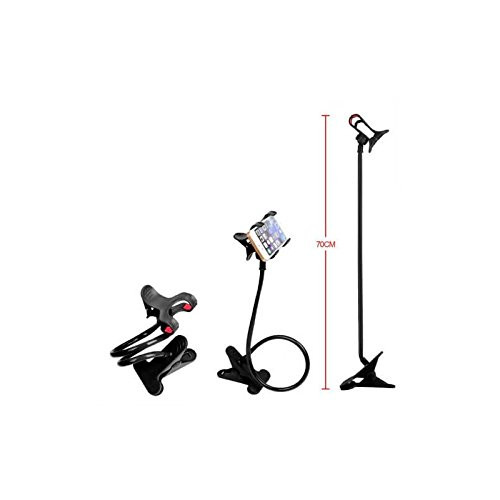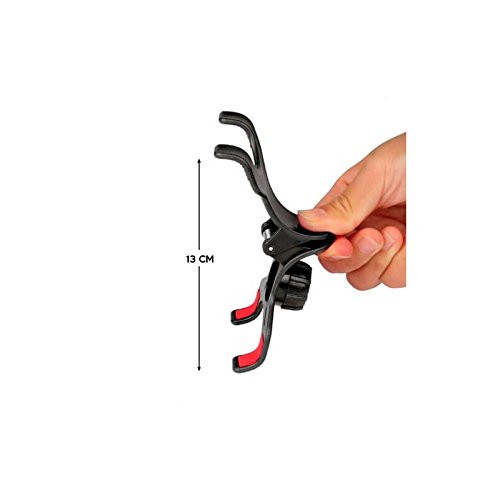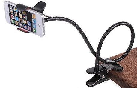 Soporte tipo brazo flexible con pinzas en ambos extremos para ajustar el móvil.