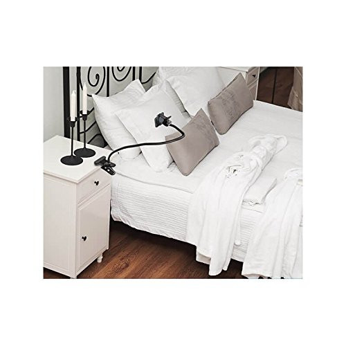 Soporte tipo brazo flexible con pinzas en ambos extremos para ajustar el móvil.