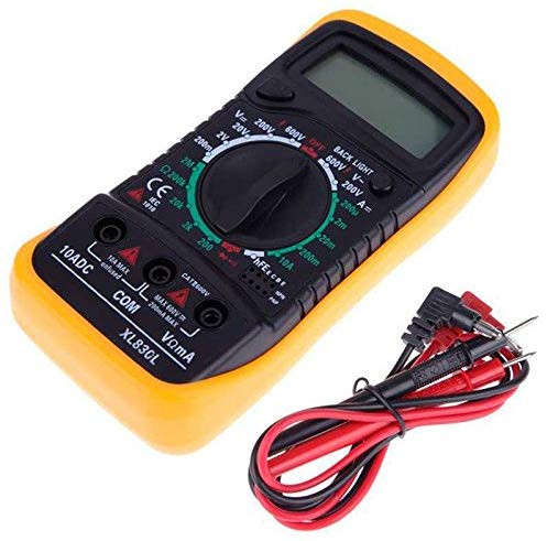 Este multímetro digital es un aparato que permite la medición de tensión contínua y alterna, corriente continua, resistencia, pilas.