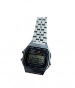 Reloj digital metálico de mano pequeño.