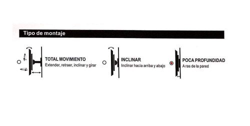 Presentamos un soporte de TV para aparatos de 23'' a 55''. La tele podrá inclinarla hacia arriba y hacia abajo con un ángulo de 15º, así como estirar el brazo y moverla hacia la izquierda o la derecha.