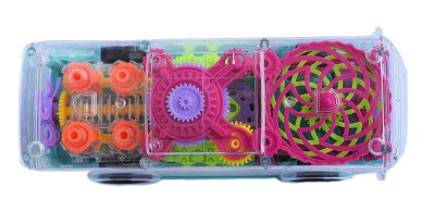 Autobús de juguete transparente.