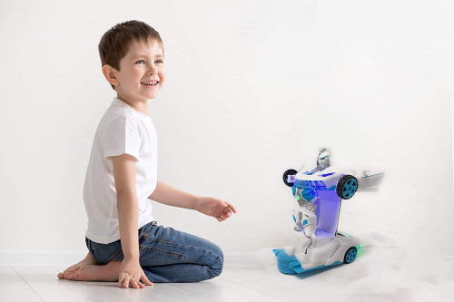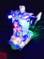 Mientras va haciendo el cambio se va moviendo, al tiempo que emite luces de colores y sonido.