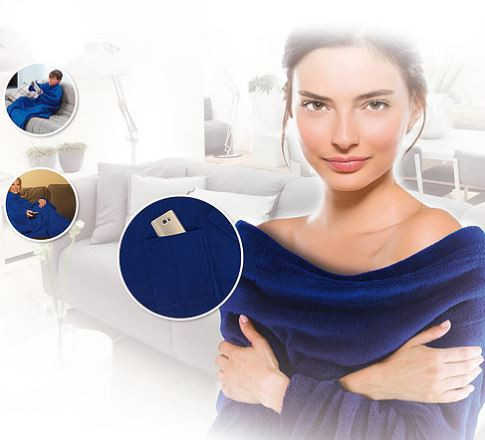 Se trata de una manta de tacto súper suave que -para evitar que tenga que sacar los brazos y se le cuele el aire frío- incluye mangas.