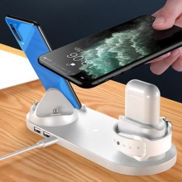 Soporte multi función para cargar diferentes aparatos de forma inalámbrica.