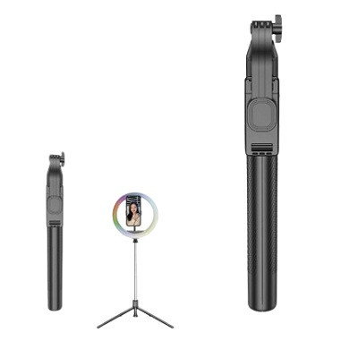 Se puede usar como palo selfie o abrir la parta baja, desplegar sus patas y usarlo como trípode.