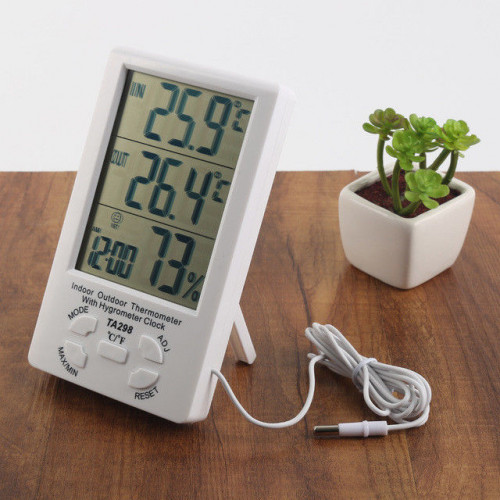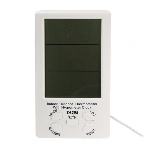 Para medir la temperatura interior y exterior de cualquier espacio presentamos este práctico termómetro/higrómetro, con pantalla LCD de grandes dimensiones para ver claramente los números.