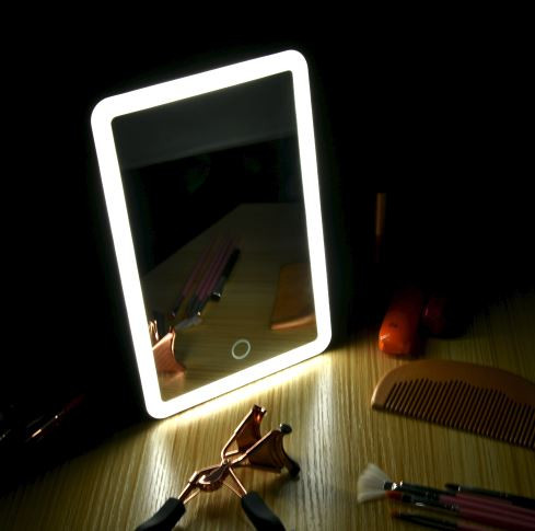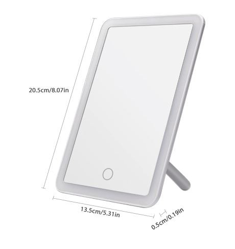 Para ello le presentamos este práctico espejo de mesa. Está provisto con luz LED a lo largo de todo el borde del espejo que se encienden por un botón táctil inteligente.