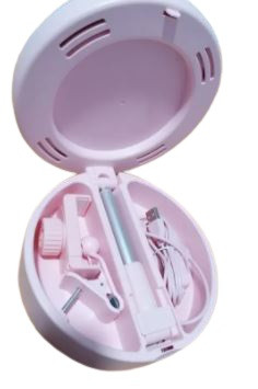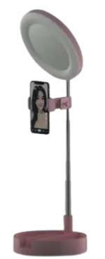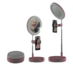 Espejo con luz extensible y soporte para móvil.