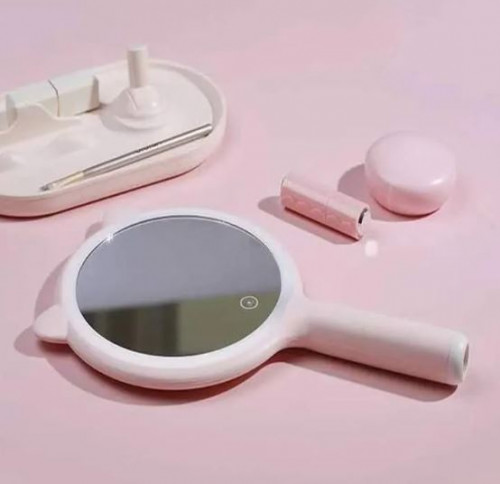 El espejo se puede poner en la base, con un ángulo de inclinación de 180º, o se puede usar como espejo de mano.