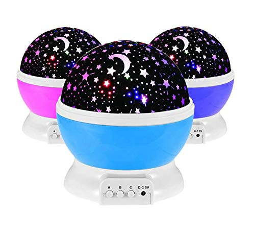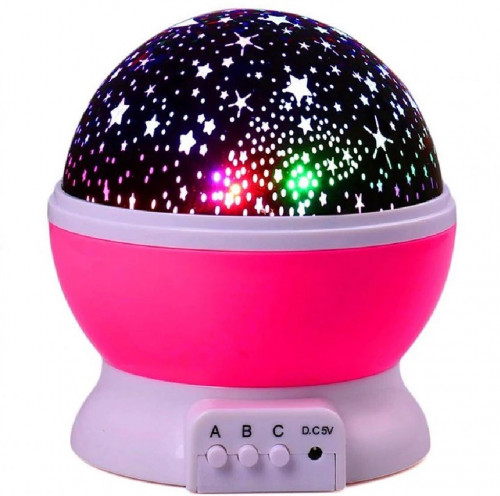 Lámpara giratoria con proyector de luces de colores en forma de estrellas.