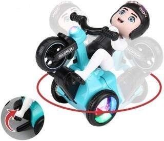 Se mueve "solo" como si estuviera conduciendo la moto y haciendo piruetas.