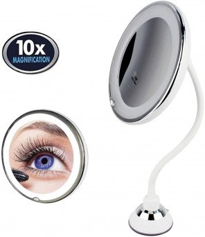Comprar Espejo de aumento con pie flexible y ventosa de sujeción. Tiene 10X de aumento. El pie se puede mover o girar en la dirección que desee. Más información -