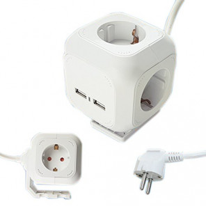 Comprar Adaptador 4 tomas de corriente / 2 USB. Un "ladrón" compacto y que le permite conectar varios aparatos eléctricos a la vez. Más información -