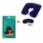 Incluye antifaz para los ojos, almohada inflable y tapones para los oídos.