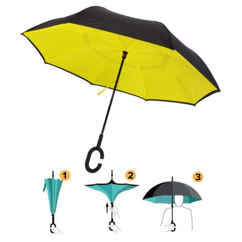 Este método de apertura y cierre ayudan a que usted no se moje cuando va a salir de un coche, por ejemplo, y que cuando llegue a su destino final no lo ponga perdido todo de agua, pues al cerrar al revés el agua queda "dentro" del paraguas una vez plegado.