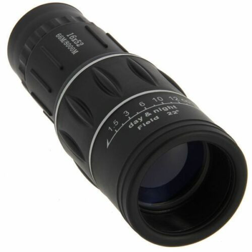Zoom: 16x52 mm, es decir, aumenta 16 veces con un diámetro del lente objetivo de 52 mm.