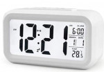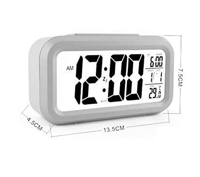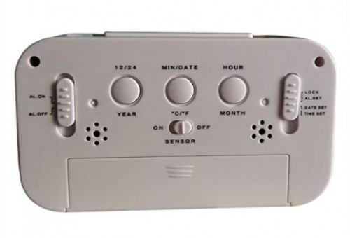 En la pantalla muestra la hora, la hora en que se ha fijado la alarma, el día y el mes y la temperatura en grados centígrados.