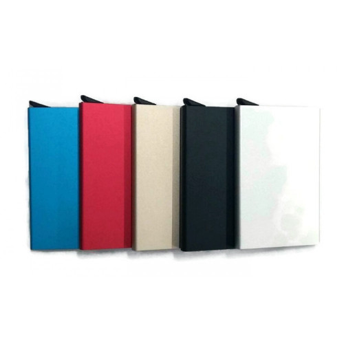 Se trata de un tarjetero automático fabricado en metal (de diferentes colores).