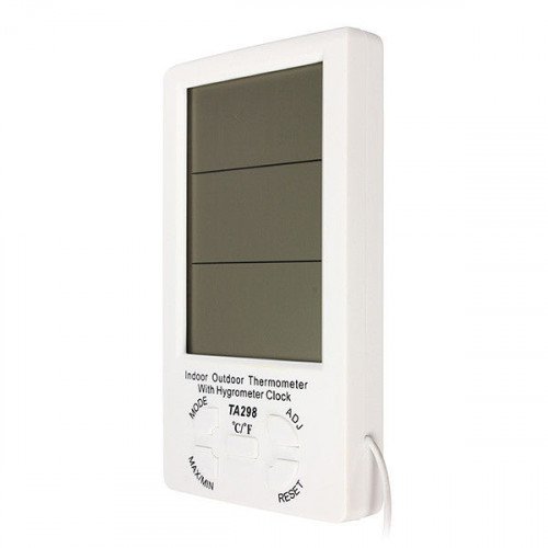 Para medir la temperatura interior y exterior de cualquier espacio presentamos este práctico termómetro/higrómetro, con pantalla LCD de grandes dimensiones para ver claramente los números.